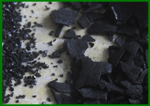 椰壳活性炭为小分子孔隙结构,将活性炭放到水里,其吸附水分子时所排空气会产生许多非常细小的水泡(肉眼刚好能看见),密密麻麻的不停浮向水面。通过物理或化学方法经过特殊工艺加工的,具有发达孔隙结构和比表面积的一种碳制品,由于活性炭这种特殊的空隙结构,使得它具有较好的吸附能力,因此被广泛用于空气净化、防毒防护、水处理、溶剂脱色提纯等工业及民用领域。